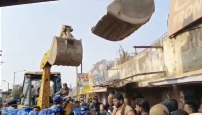 धरना प्रदर्शन कर रहे दुकानदारों को हटाने के लिए पुलिस ने लाठीचार्ज की। इसके तुरंत बाद बुलडोजर चलाकर चारों दुकानों को तोड़ा गया और रास्ता बनाया गया।