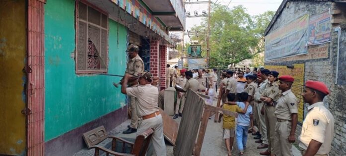 कई संगीन मामलों में लंबे समय से फरार चल रहे आरोपित के घर पहुँची पुलिस की भारी टीम।