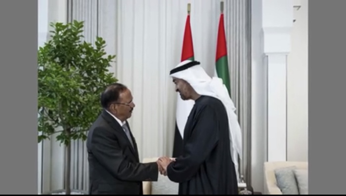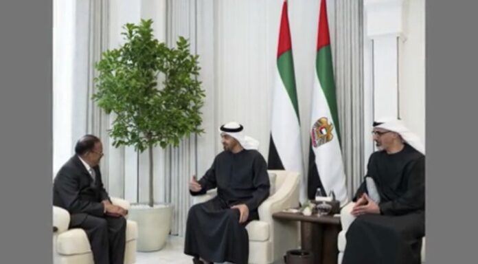 नई दिल्ली। भारत के राष्ट्रीय सुरक्षा सलाहकार (एनएसए) अजीत डोभाल ने संयुक्त अरब अमीरात (यूएई) की अपनी आधिकारिक यात्रा के दौरान आबू धाबी में राष्ट्रपति शेख मोहम्मद बिन जायद अल नाहयान से मुलाकात की। इस उच्च स्तरीय बैठक का मुख्य उद्देश्य भारत और यूएई के बीच व्यापक रणनीतिक साझेदारी को और अधिक सशक्त बनाना तथा क्षेत्रीय सुरक्षा और ऊर्जा सुरक्षा जैसे महत्वपूर्ण क्षेत्रों में सहयोग को विस्तार देना था।