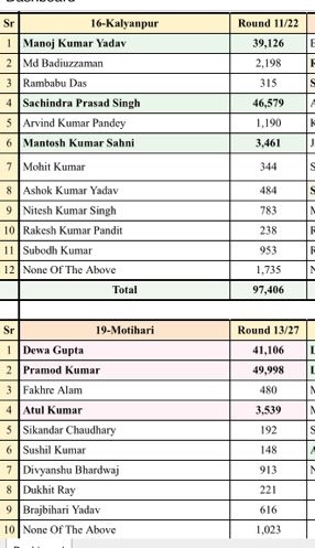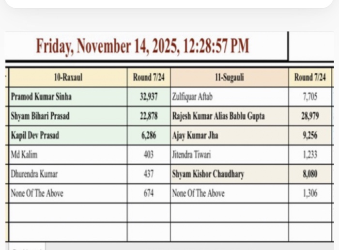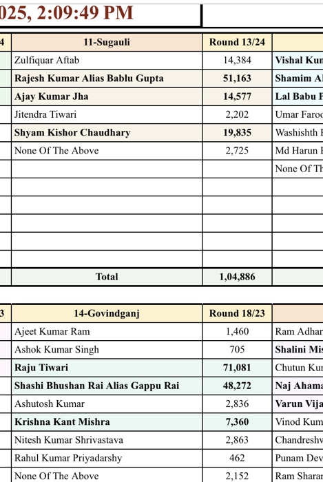 11. सुगौली से राजेश कुमार ( बबलु गुप्ता अपने निकटतम प्रतिद्वंदियों से बहुत आगे चल रहे हैं।)