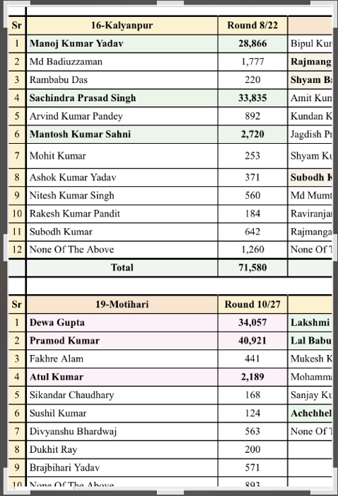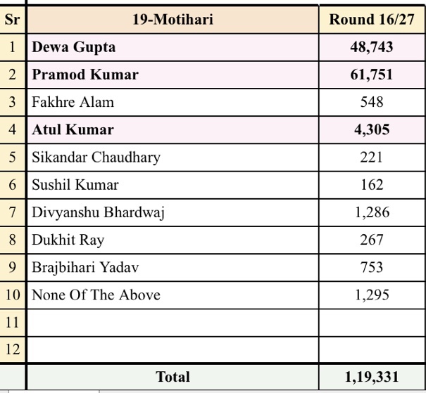 पूर्वी चंपारण विधानसभा सीटों की गिनती का ताजा हाल:
