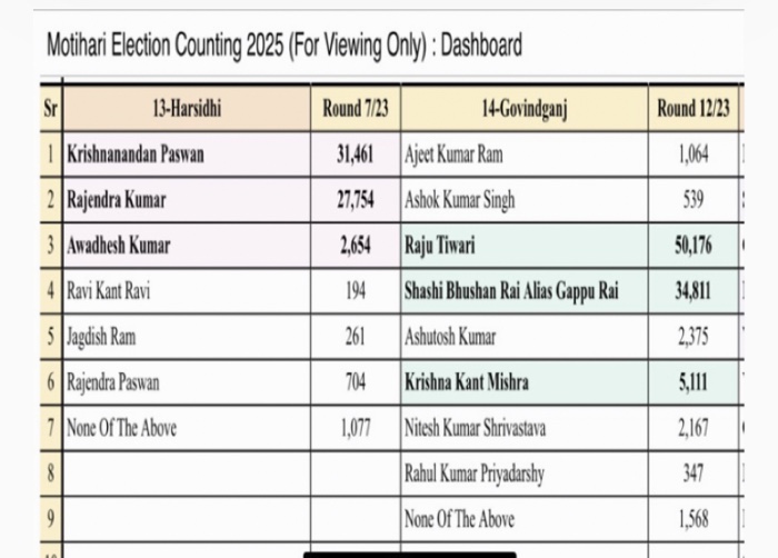 Motihari | Live update of the vote counting for the assembly constituencies of East Champaran.