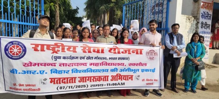 इसी क्रम में शुक्रवार को ही महाविद्यालय परिसर में मतदाता जागरूकता अभियान का भी आयोजन किया गया। यह कार्यक्रम प्रातः 11 बजे से प्रारंभ हुआ। कार्यक्रम का शुभारंभ प्राचार्य डॉ. विनोद बैठा ने हरी झंडी दिखाकर रैली को रवाना कर किया। रैली में शामिल छात्र-छात्राओं और एनएसएस के स्वयंसेवकों ने “पहले मतदान, फिर जलपान”, “लोकतंत्र का मान बढ़ाओ, वोट जरूर डालो” जैसे नारों से शहर का माहौल लोकतांत्रिक चेतना से भर दिया। मतदाता जागरूकता अभियान का मुख्य उद्देश्य सशक्त लोकतंत्र के निर्माण हेतु मतदाता शिक्षा, जागरूकता और साक्षरता को बढ़ावा देना था, ताकि देश की लोकतांत्रिक प्रक्रिया में अधिक से अधिक जनभागीदारी सुनिश्चित हो सके।
