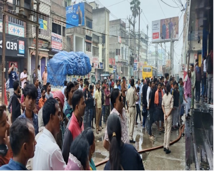 Motihari | A massive fire broke out at the Titan showroom in Raxaul, destroying property worth lakhs.
